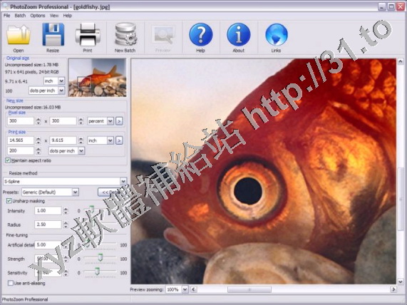 數碼圖片進行放大時,總會降低圖片的品質,而這款軟體使用了 S-Spline 技術(一種